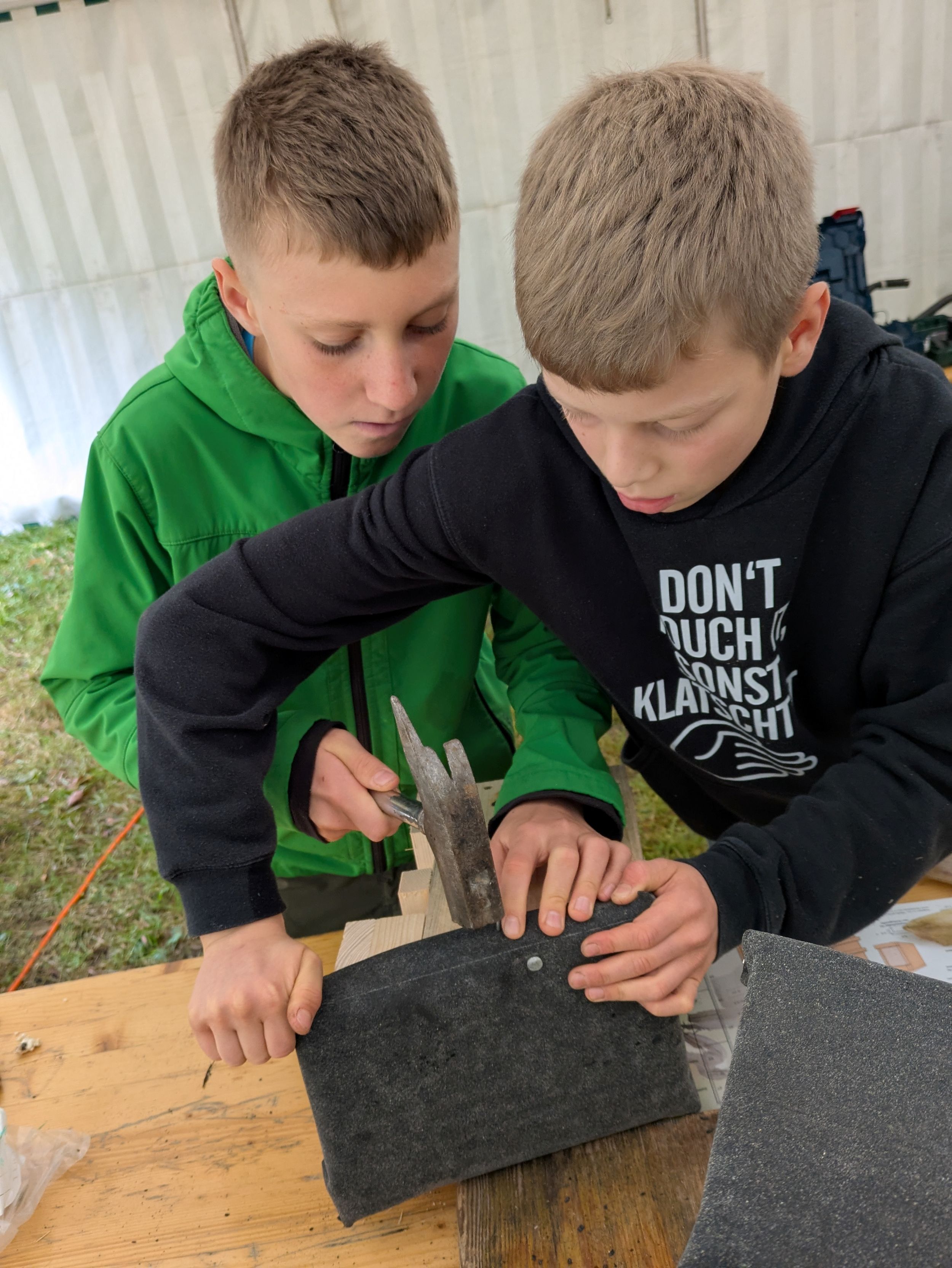 Vom 07. bis zum 09. Oktober trafen sich die Jungen Naturwächter der Naturschutzstation Neschwitz auf dem Fischereihof Kleinholscha zum alljährlichen Herbstcamp. Auf dem Plan standen unter anderem: den angrenzenden Wald durchstreifen, Buden bauen, frischen Apfelsaft pressen und verkosten, Pizza selbst herstellen und im großen Holzbackofen backen, Knüppelteig am Lagerfeuer genießen, Werwolf spielen und neue Nistkästen für das Gelände zusammenschrauben. Die geplante GPS-Tour fiel buchstäblich ins Wasser – stattdessen machten wir es uns im Schlafsaal gemütlich und schauten „Kevin allein in New York“. Das regnerische Wetter konnte uns die Laune nicht vermiesen – alle hatten super viel Spaß und freuen sich schon auf das nächste Treffen in den Winterferien!